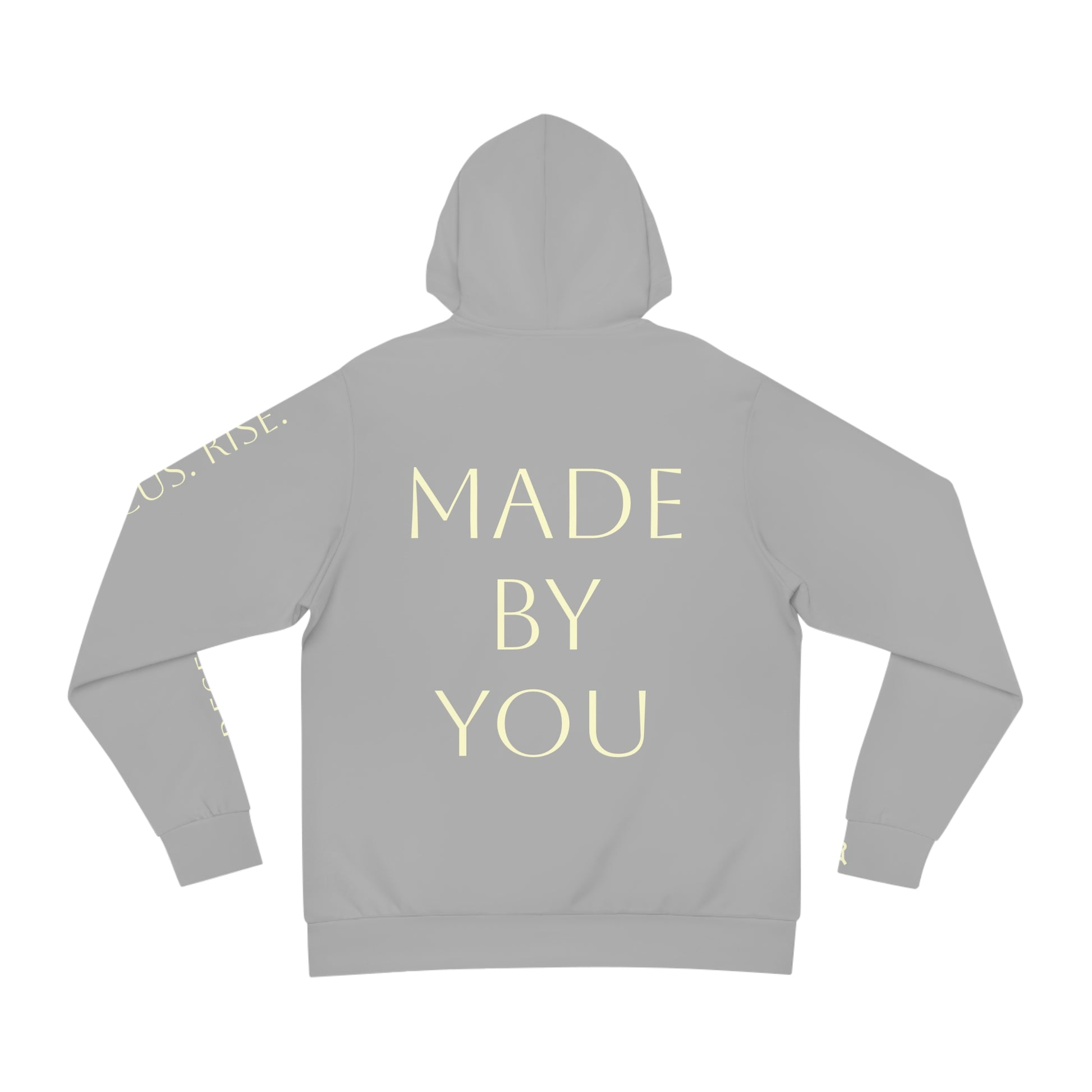Crafted from a premium mid-weight fleece blend, this hoodie is built to move with you — whether you're training, creating, or resetting. Featuring the bold Made By You logo on the front and an optional motivational slogan on the back, it’s more than just apparel — it’s a mindset.